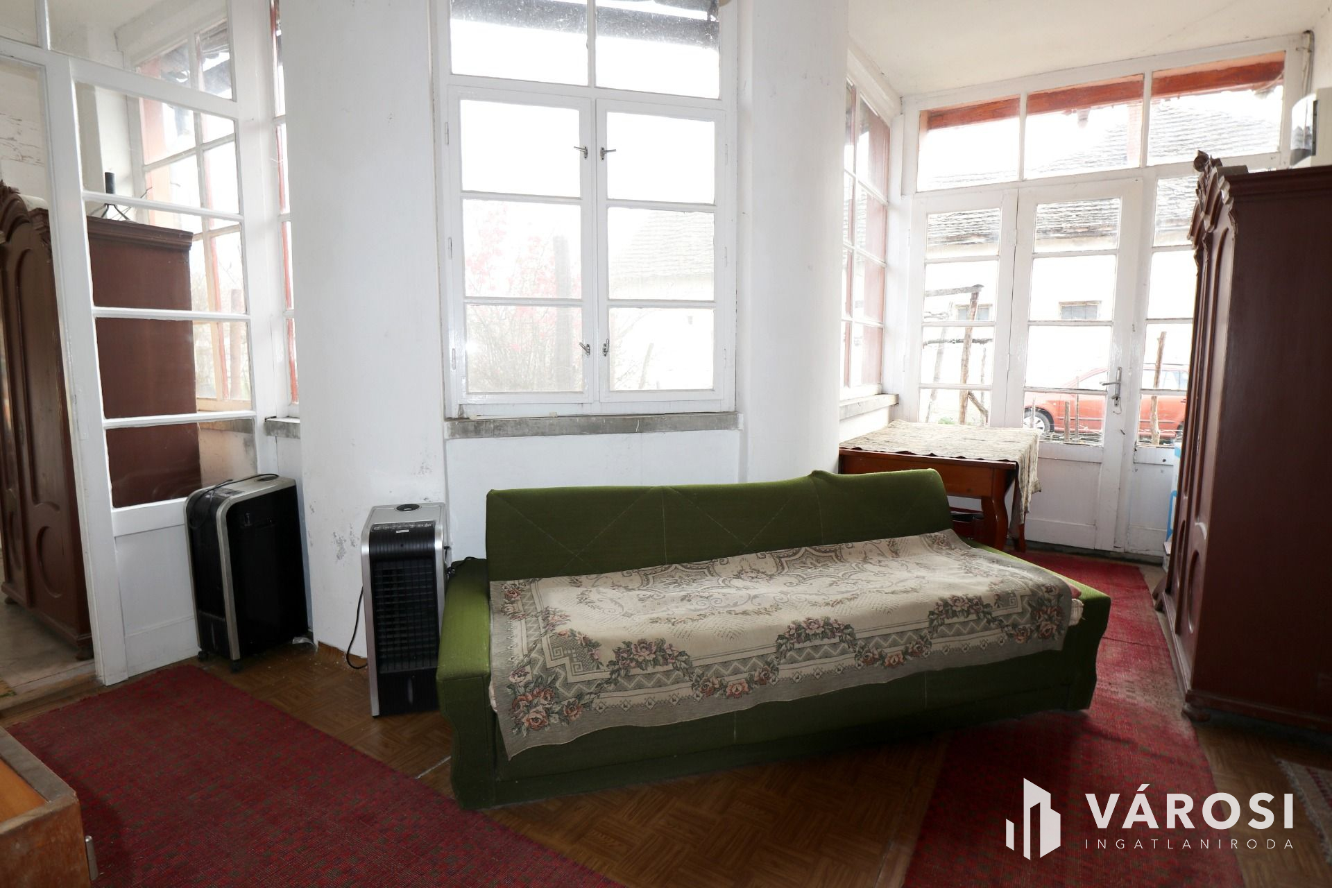 A háromszobás tágas, napos 129 m2-es lakóépület korából adódóan minimum esztétikai felújítást igényel.