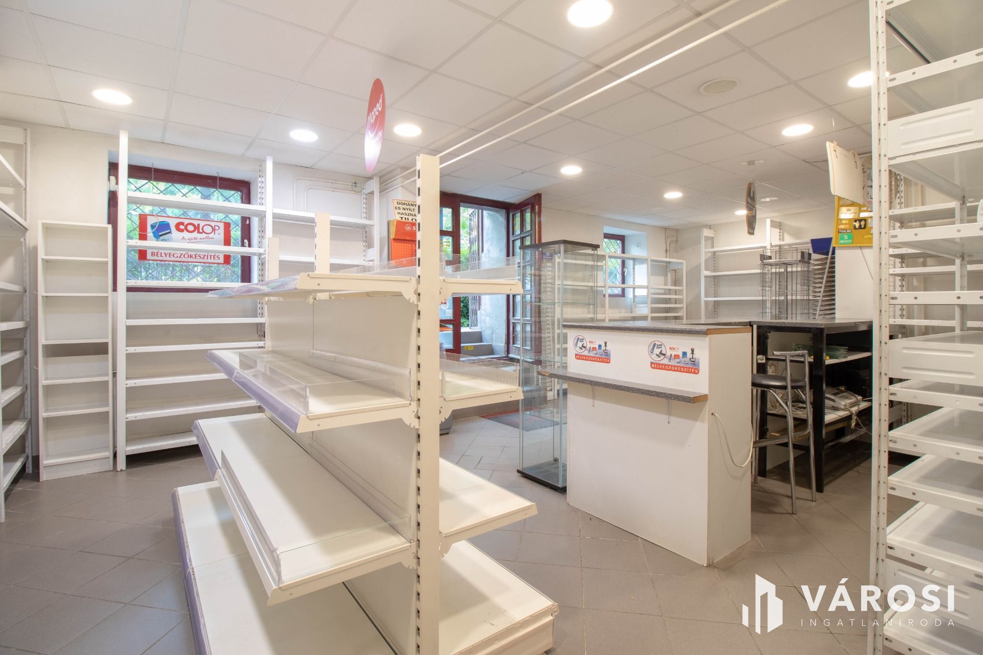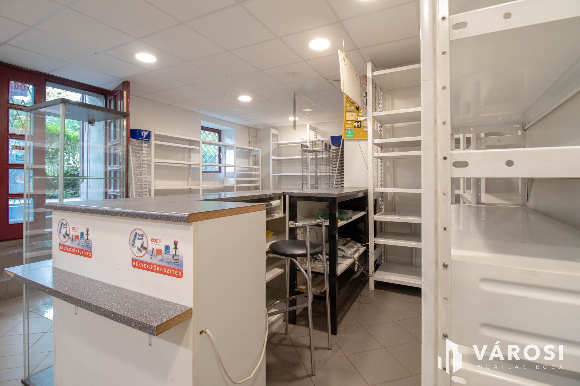 A fotókon is látható módon a helyiség világos, ablakos, bejárata közvetlenül az utcáról nyílik.