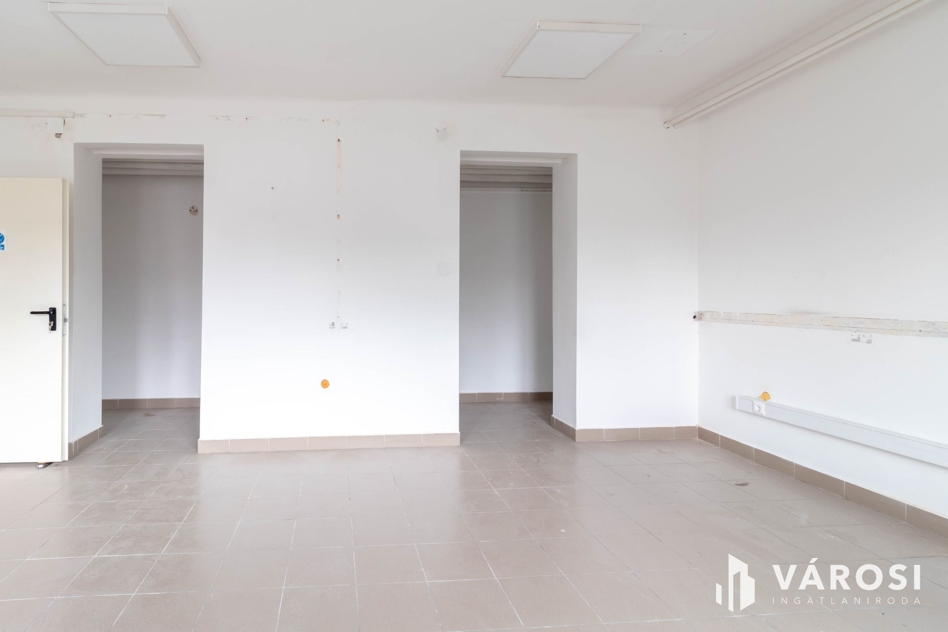 A két, egymásból nyíló, egyenként 25 m2-es helyiségből álló iroda az irodaház földszintjén helyezkedik el. A járólapos padlóburkolat biztosítja a könnyű tisztán tarthatóságot.