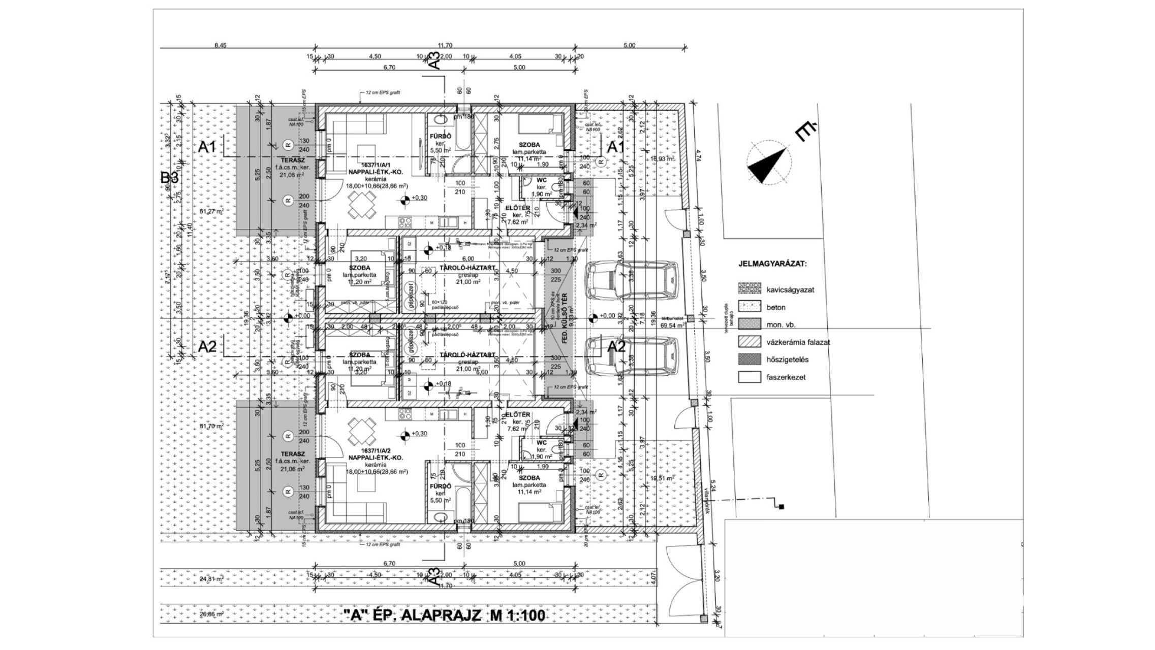+ Tároló / gépészeti helyiség: 21 m2