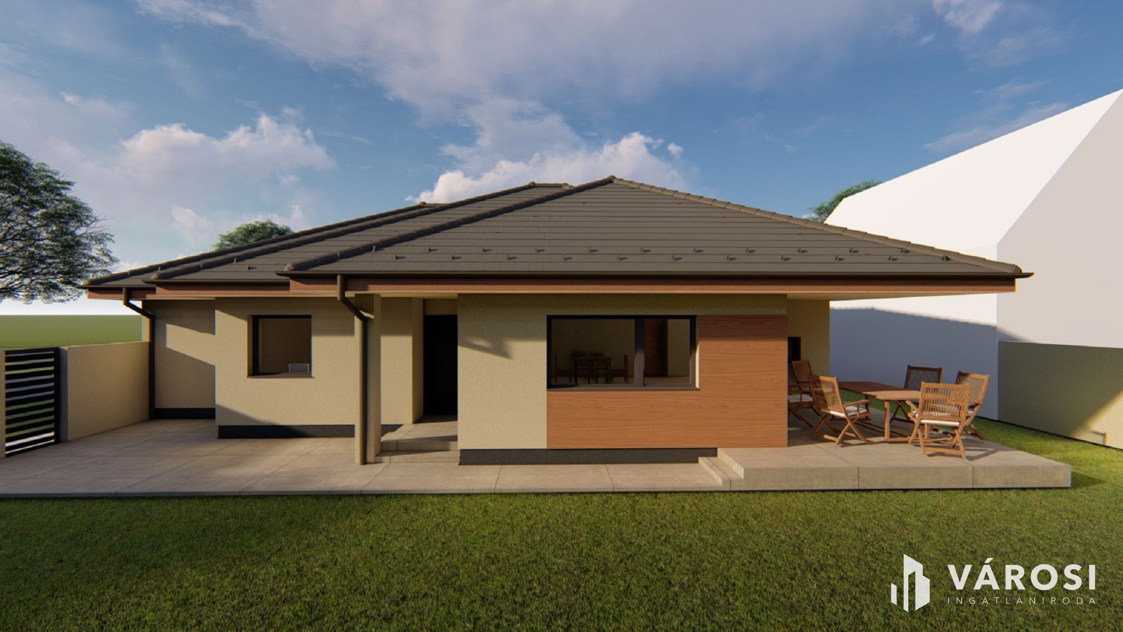 - 144. nm alapterület,17. nm terasz,4. nm fedett bejáró.
