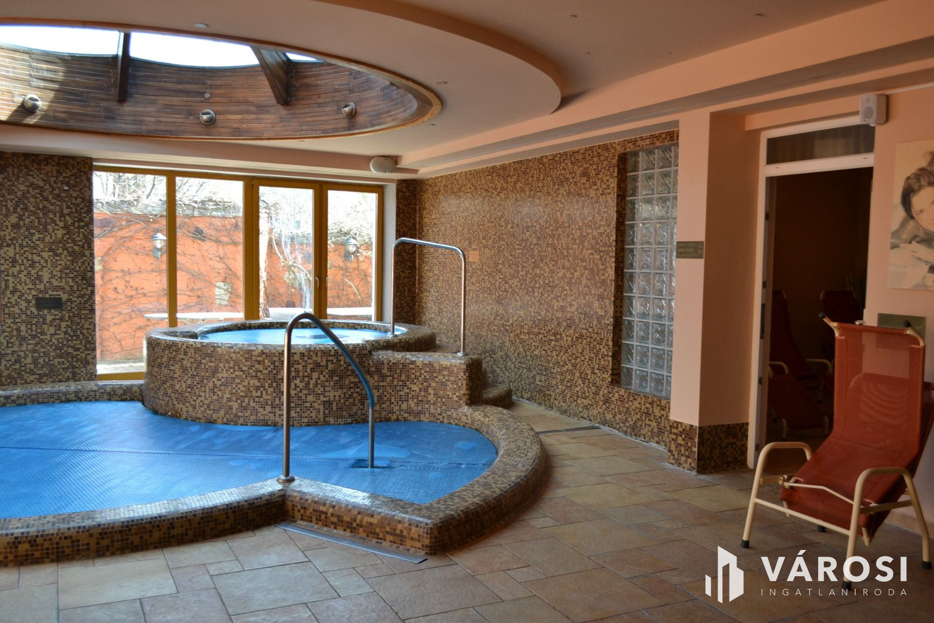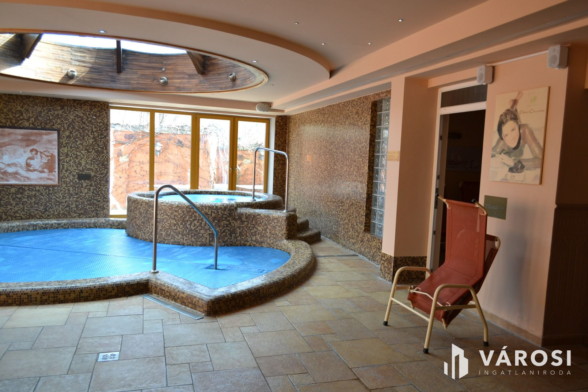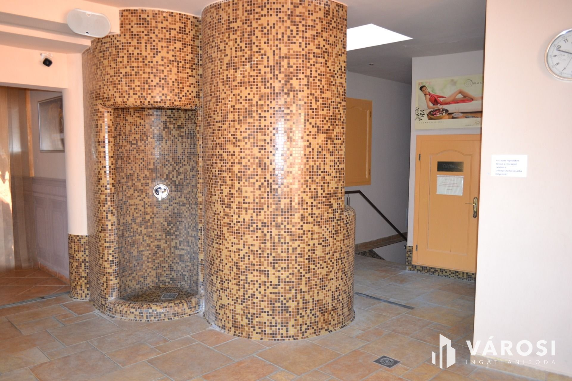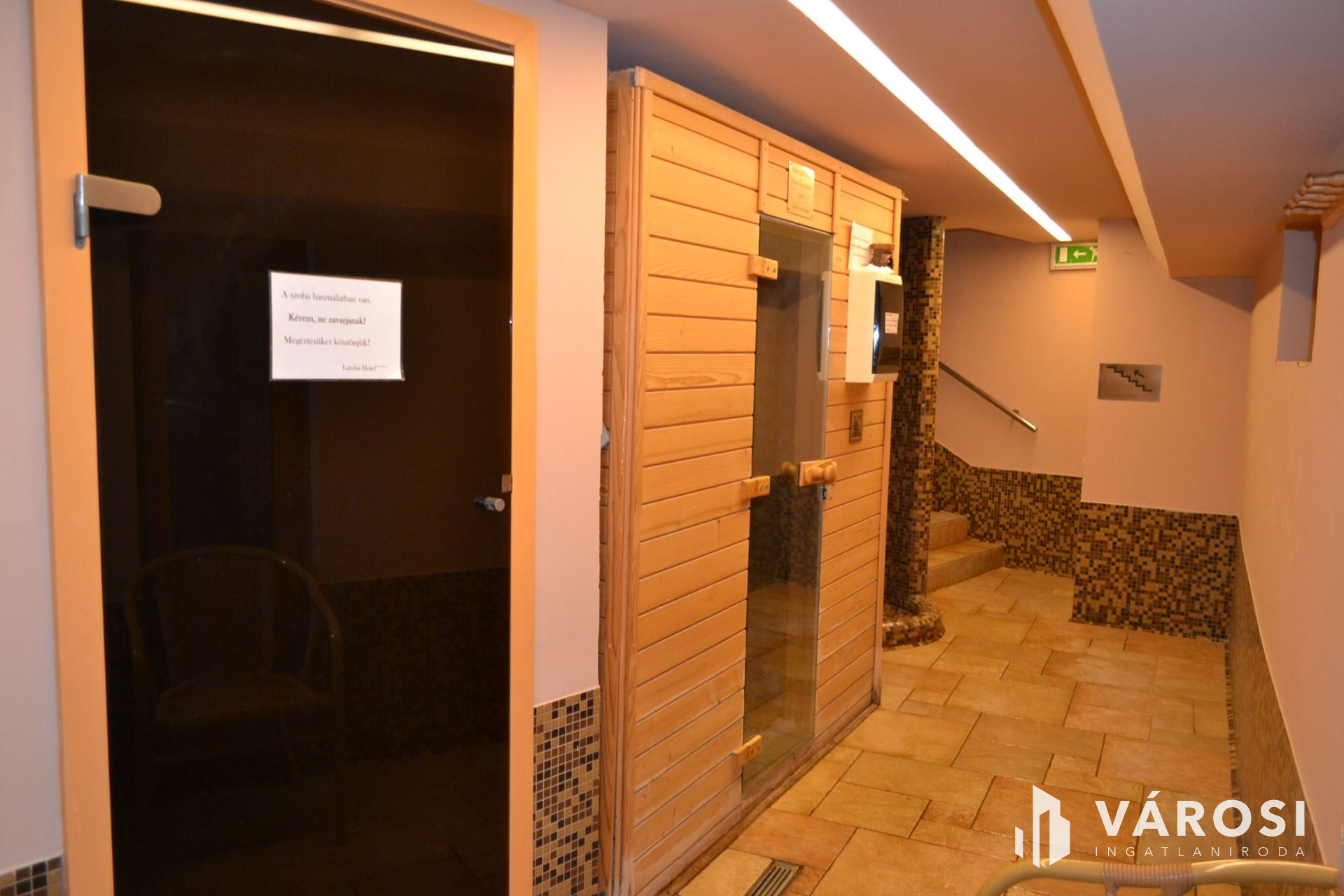 Pincéjében: mosodával, saját mosó-szárító-és vasalógépekkel, több tárolóhelyiséggel, és a berendezéshez tartozó készletekkel.