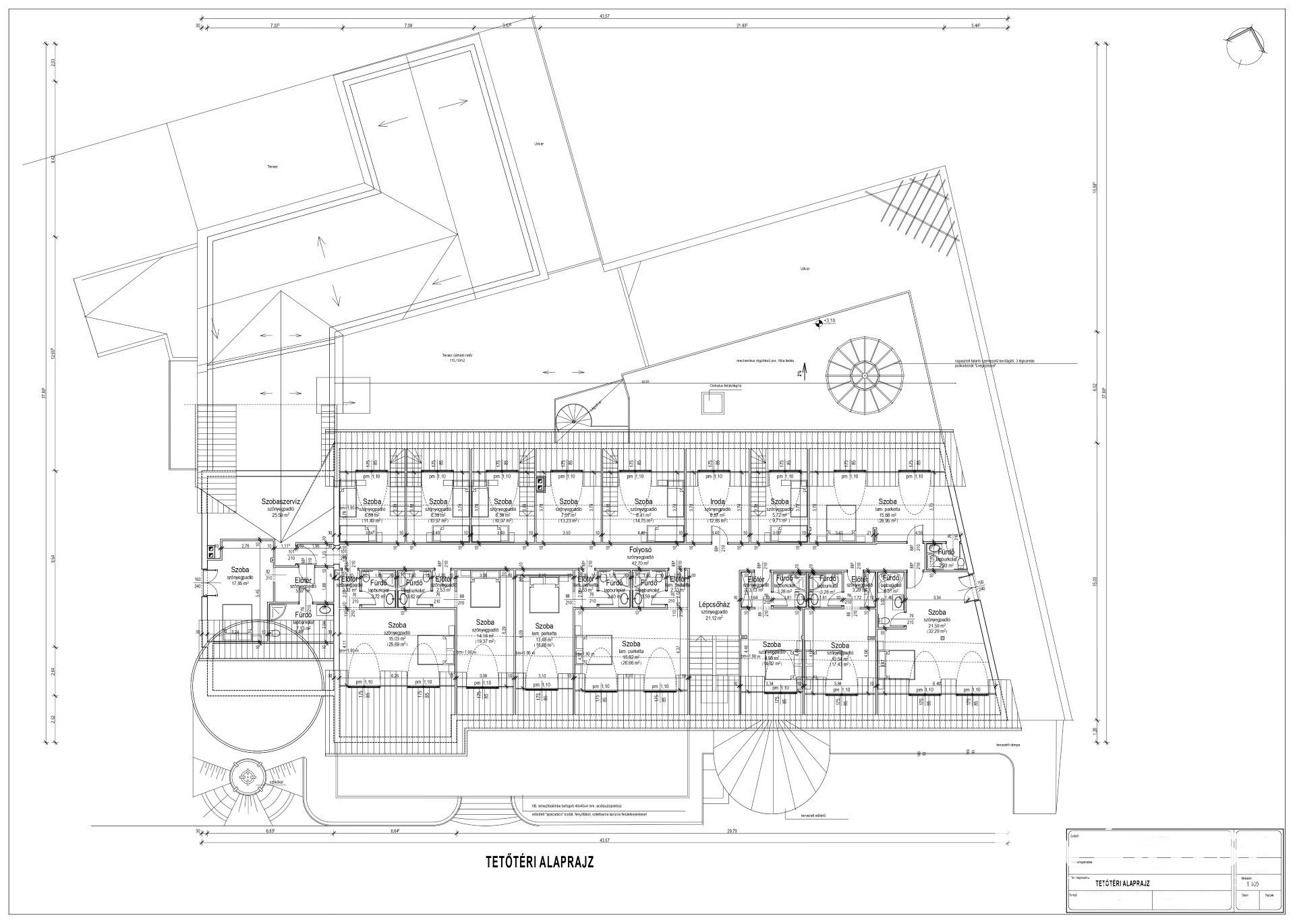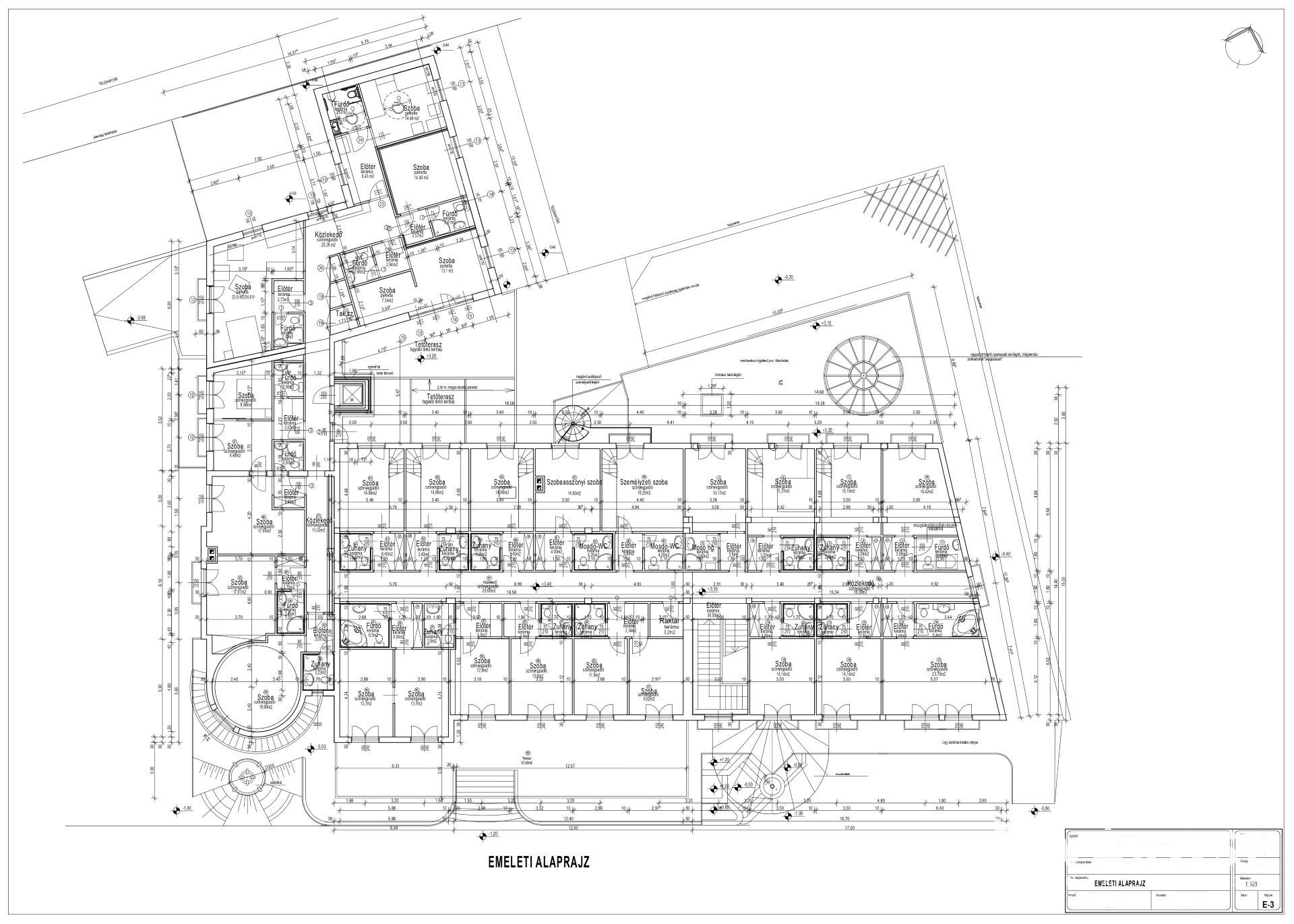 Ezen kívül személyzeti lakrészek: női-férfi (szobákkal, fürdőszobával, és konyhával)