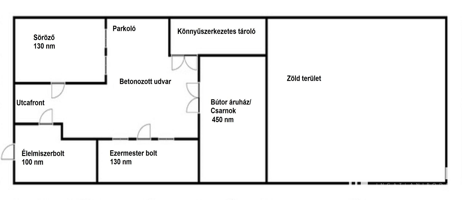 A vételár egyik épület bútorzatát, és gépesítését sem tartalmazza, azok külön megbeszélés tárgyát képezik. A tulajdonos a komplexumot egyben szeretné értékesíteni,de az egyenkénti értékesítéstől sem zárkózik el! Ha valaki épületenkénti vásárláson gondolkodik, úgy az árak felosztása a következő: Söröző- 25.000.000 Ft, Bútordiszkont- 30.000.000 Ft, barkácsbolt- 10.000.000 Ft, az élelmiszerbolt pedig 20.000.000 Ft.