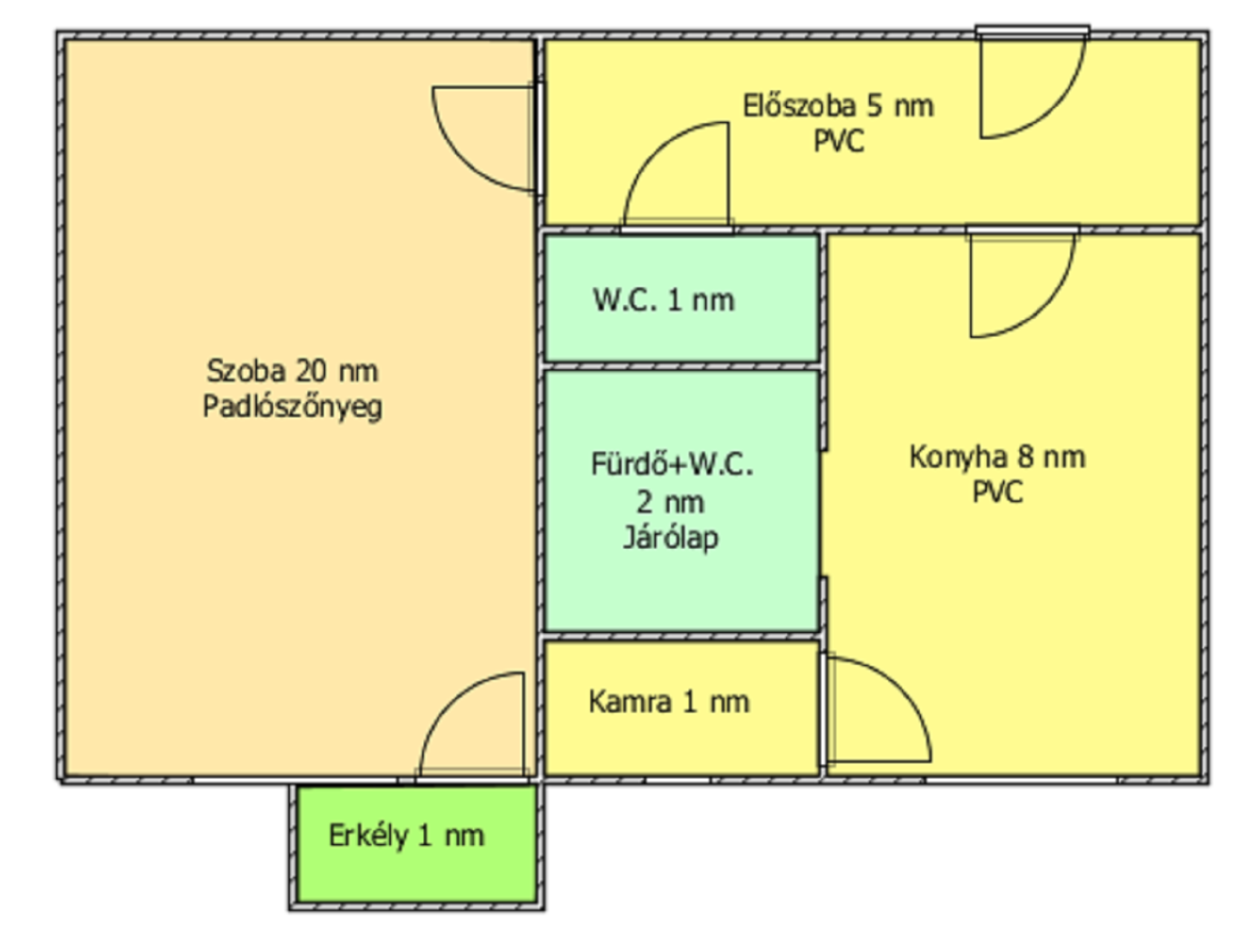 Helyiségei: 1 szoba, konyha, kamra, előszoba, fürdőszoba, külön nyíló W.C., erkély.