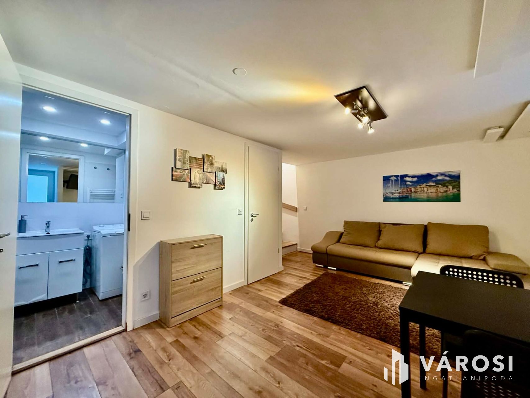 - szintén amerikai konyhás nappali + fürdő + gardrób,