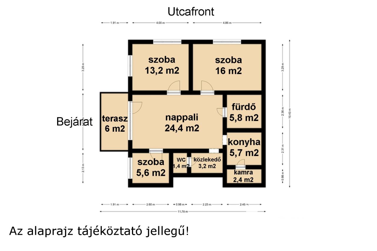 A lakás nappaliból, 2,5 szobából, konyhából, kamrából, fürdőszobából és WC-ből áll, így tökéletes választás lehet családoknak vagy akár pároknak is.