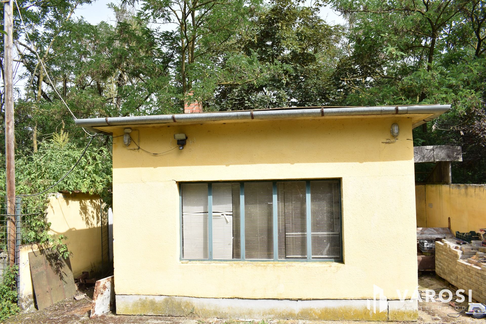 The building on the property was constructed in the 1960s, is structurally impeccable, with brick walls and a reinforced concrete frame. The building previously operated as a grain storage and drying facility. Thanks to its owner, continuous improvements have been made in recent years, including replacement of the water pipes, the entire electrical network, and the installation of 'industrial electricity' (3x50A), which currently operates at residential rates. It is suitable for the installation of a solar panel system. The main building’s roof has been renovated, and mains drinking water has been connected. On the ground floor, a cozy studio apartment (with kitchen, bathroom, and toilet) has been created. Heating is provided by wood-burning, air conditioning with heating/cooling function, and other electric heating options. Spaces for a washing machine, dishwasher, extractor fan, refrigerator, TV, and audio equipment have been set up; hot water is provided by an electric boiler. For goods loading, a large gate has been structurally prepared, with supporting pillars and a lintel. Additionally, foundations and sewage piping have been prepared for a few ‘wet’ rooms.