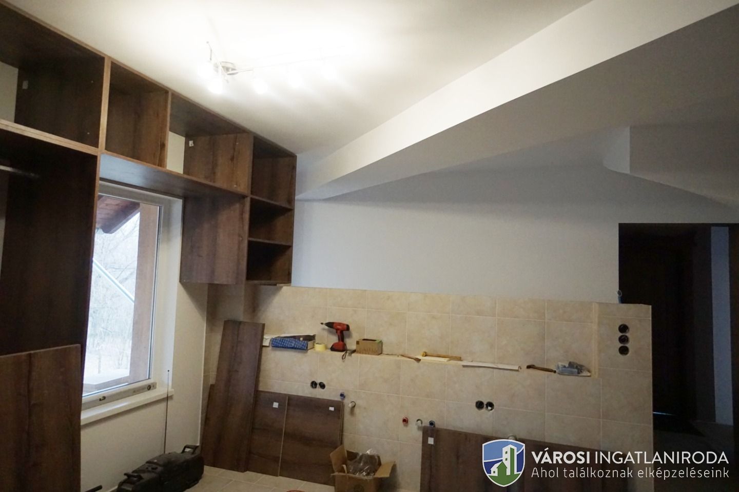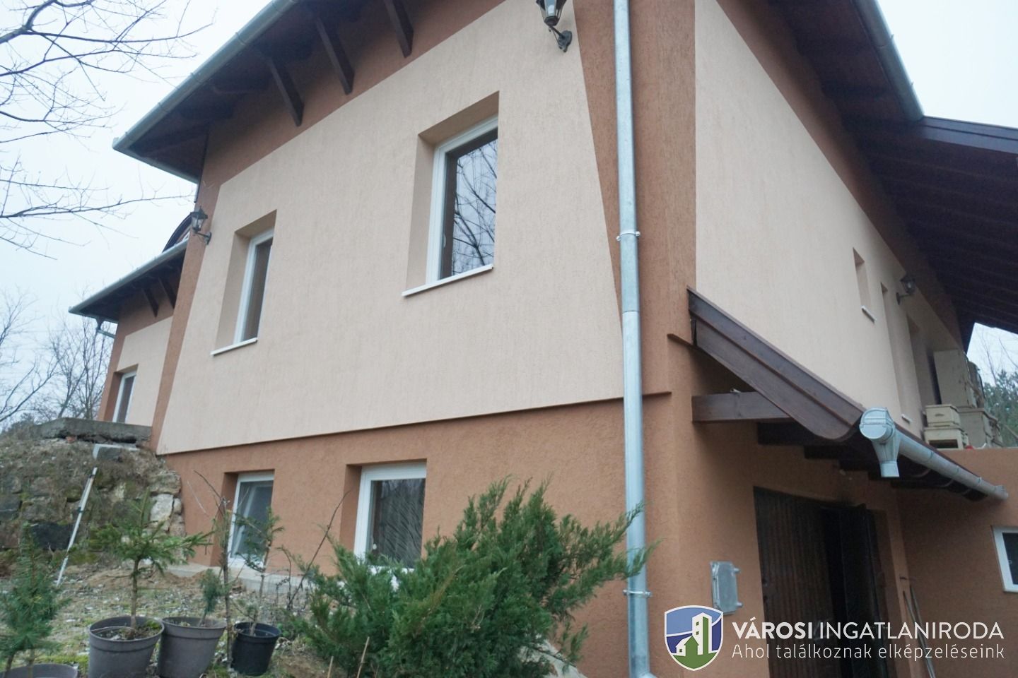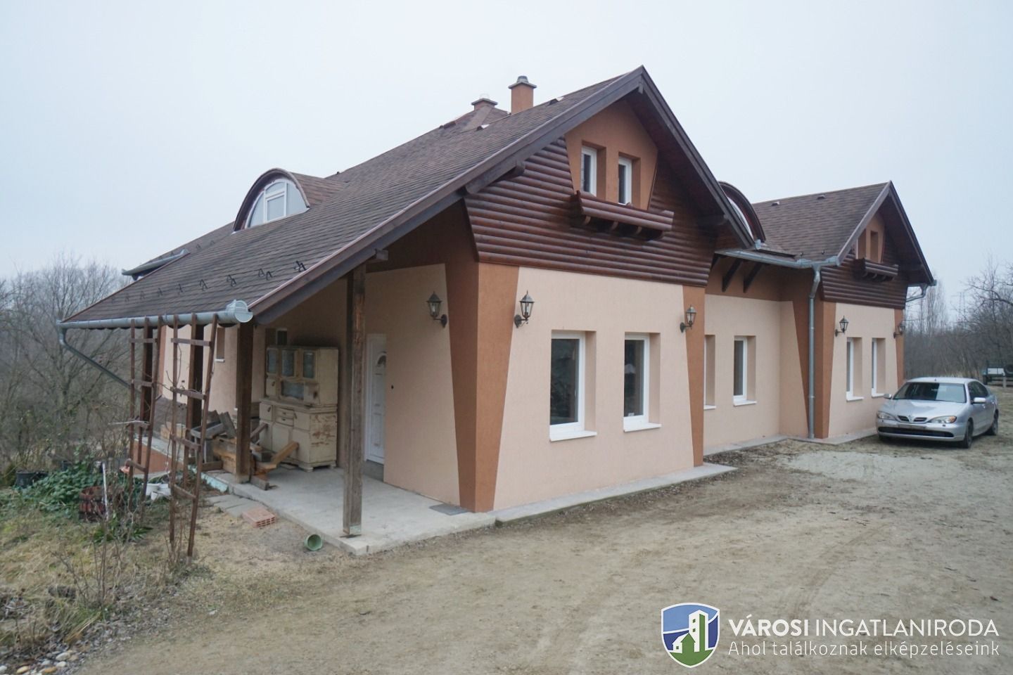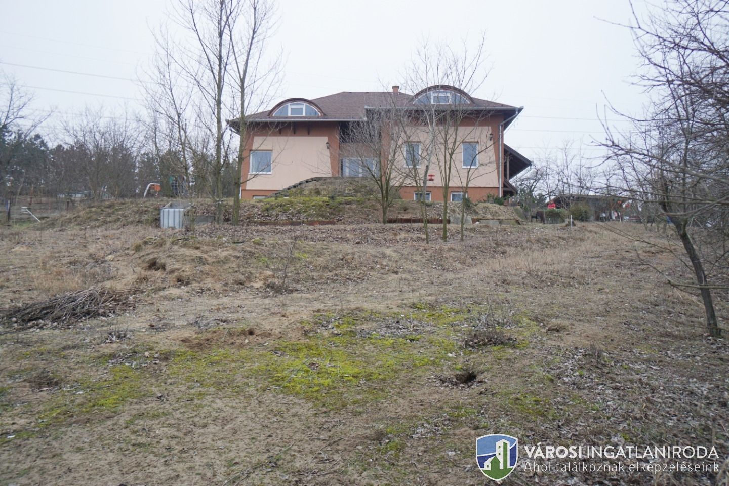 A területből 9278 nm részben lekerített építési terület, rajta 65 %-os készültségű 342 nm-es családi házzal.