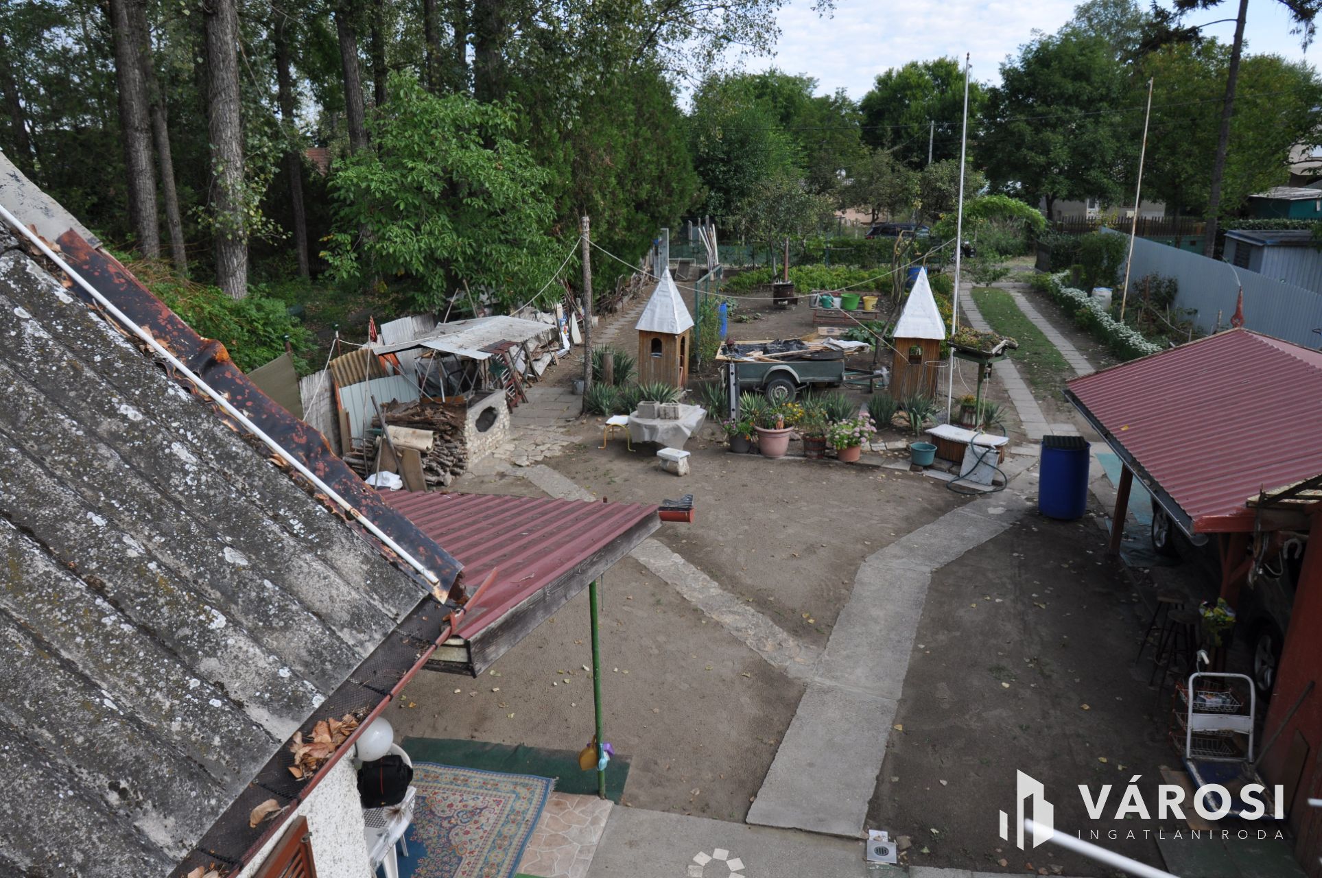 Emellett az ingatlanon található egy 12 m2 nagyságú szerszámos kamra, és egy hozzá épített kocsibeálló is, hogy az esetleges zord időjárás esetén is védett helyen legyen minden értékünk.