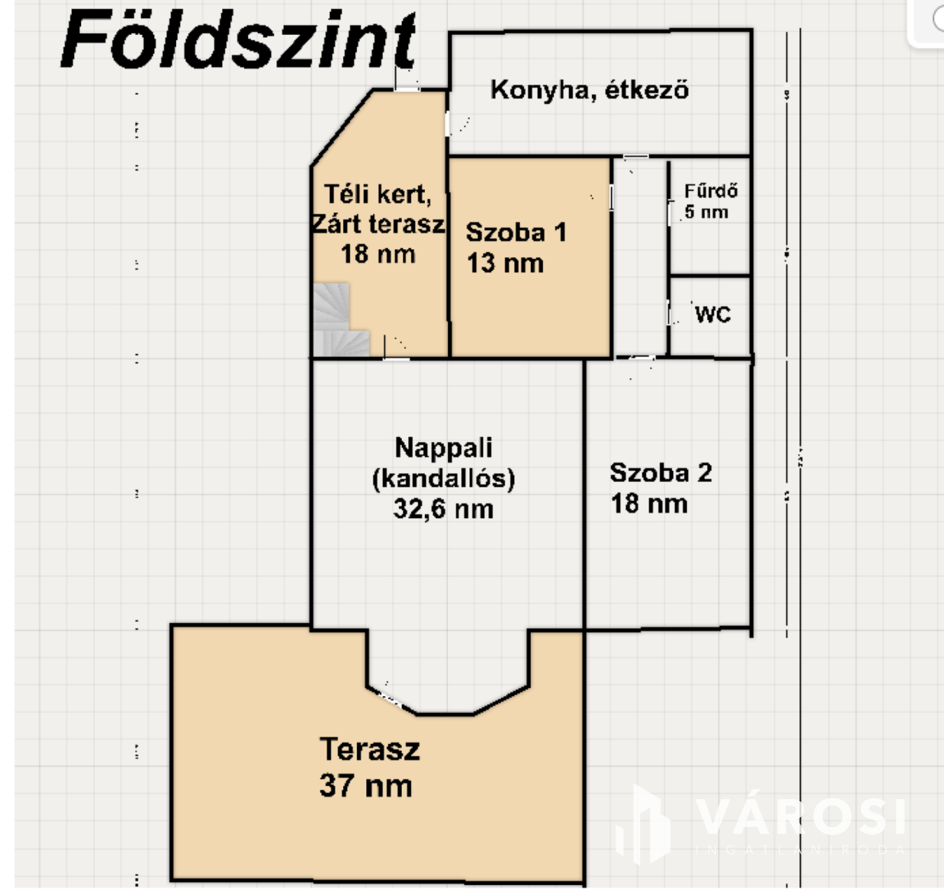 A földszinten tágas nappali, zárt terasz illetve a konyha is itt helyezkedik el az étkezővel, tovább haladva találunk 2 szobát illetve fűrdőszoba és egy külön álló wc.