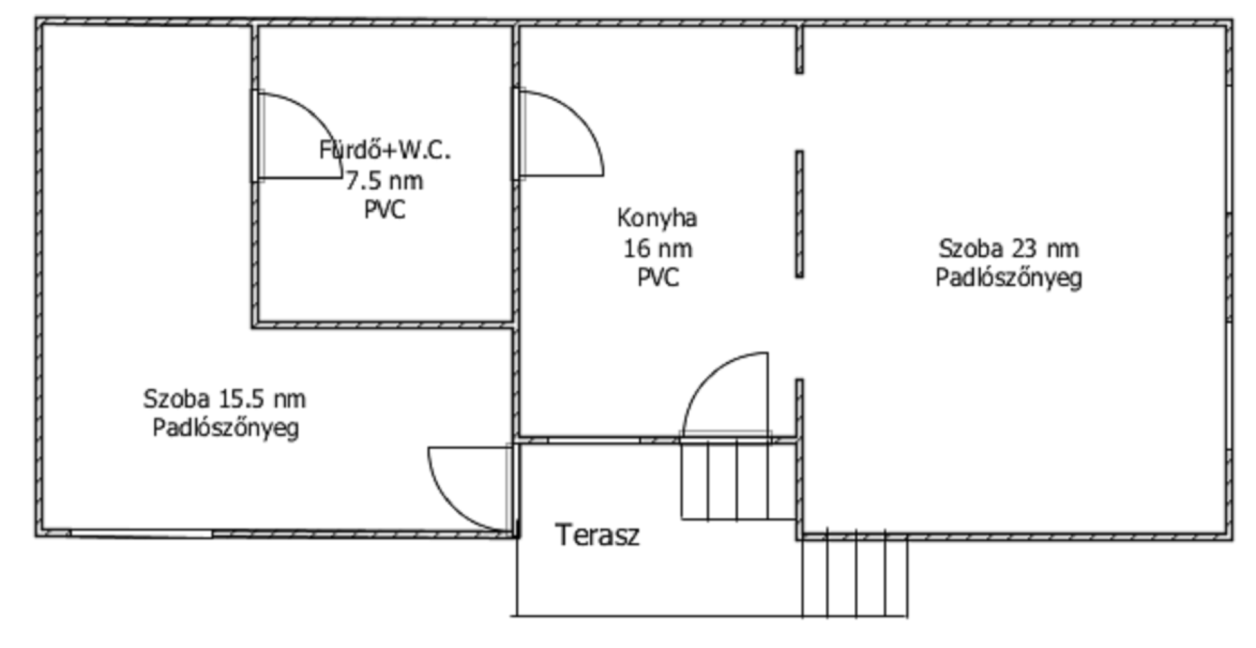 Helyiségei: 2 szoba, fürdőszoba, konyha.