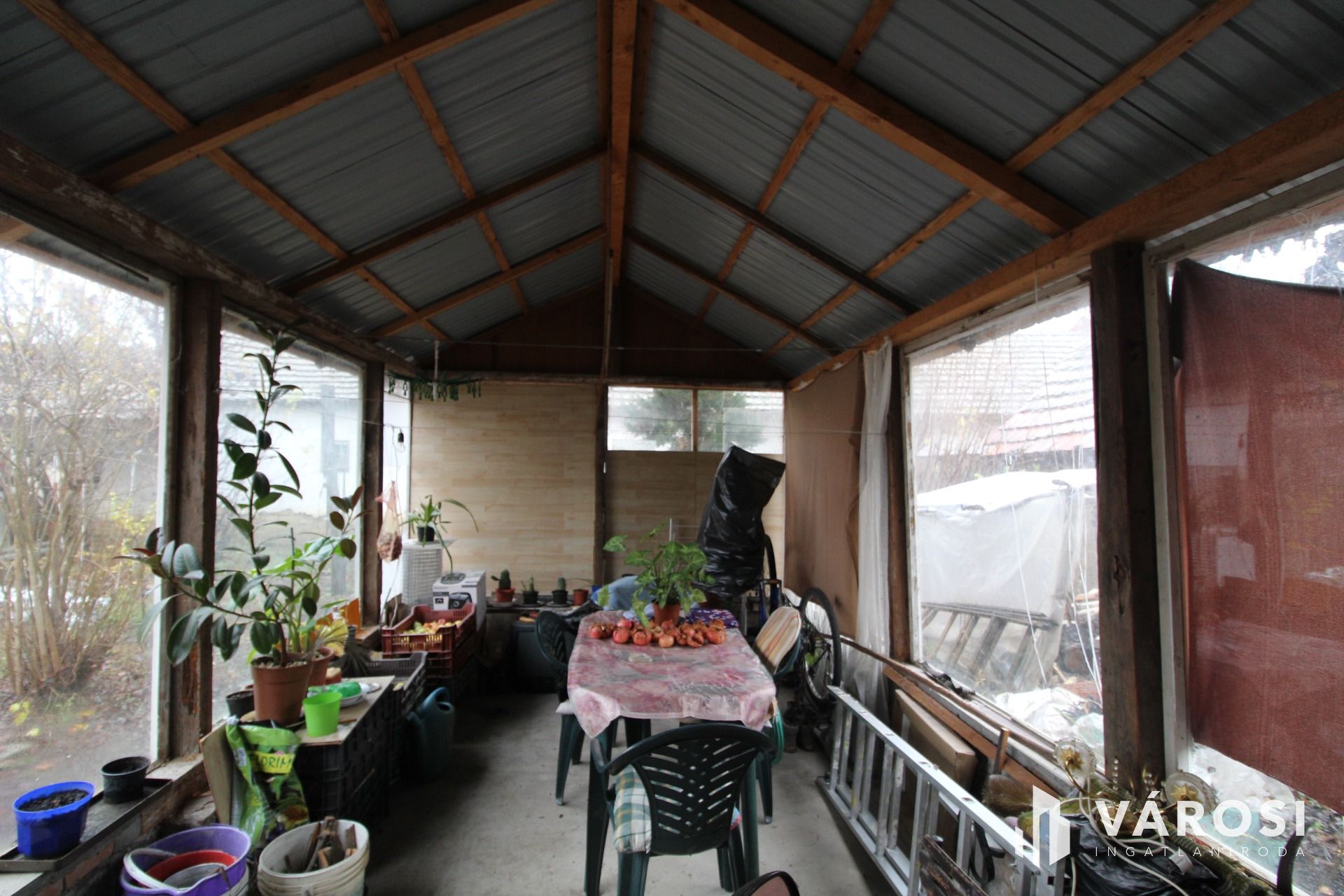 Az ingatlan bejáratánál könnyűszerkezetes előtér van építve.