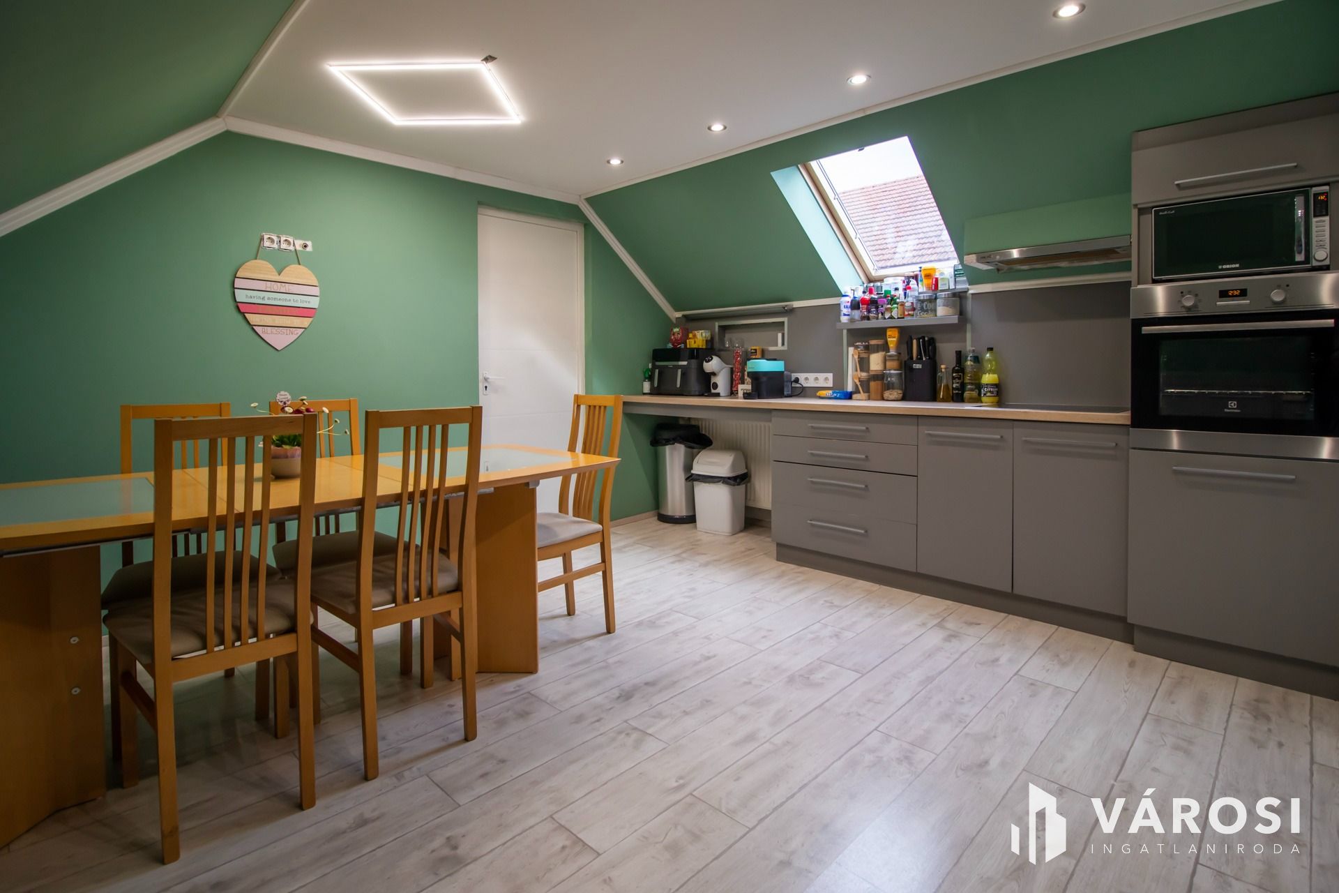 Mindkét szinten korszerű, gépekkel felszerelt konyha található, ami természetesen marad és a következő lakók kényelmét fogja szolgálni.