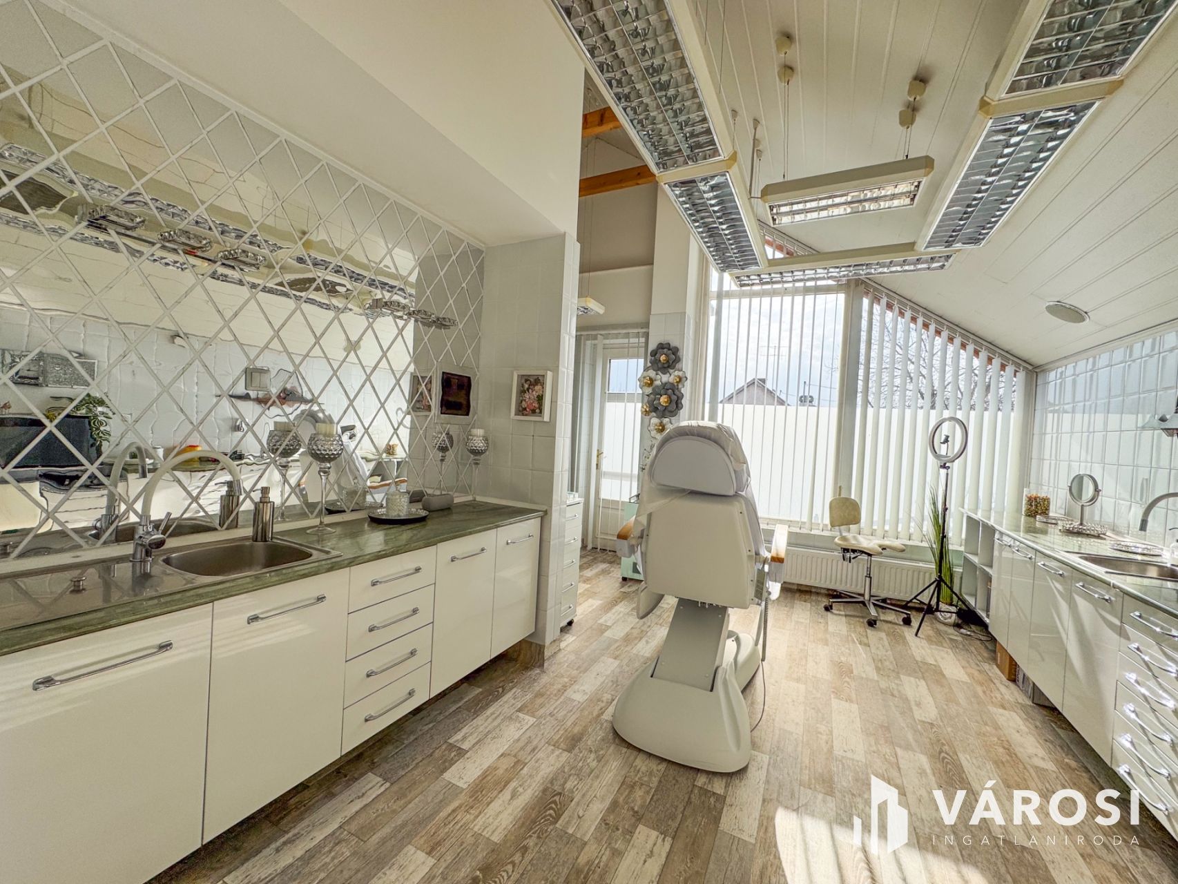 Az ingatlan nagyon szép állapotú, részben felújított, berendezett, így azonnal használatba vehető. Ideális választás lehet szolgáltató egységek (orvosi rendelő, fodrász, kozmetikus stb.) számára. Korábban fogorvosi rendelőként és orvos esztétikai rendelőként is működött. A rendelőhöz egy közös használatú teakonyha és mosdó, valamint egy tágas váró is tartozik.