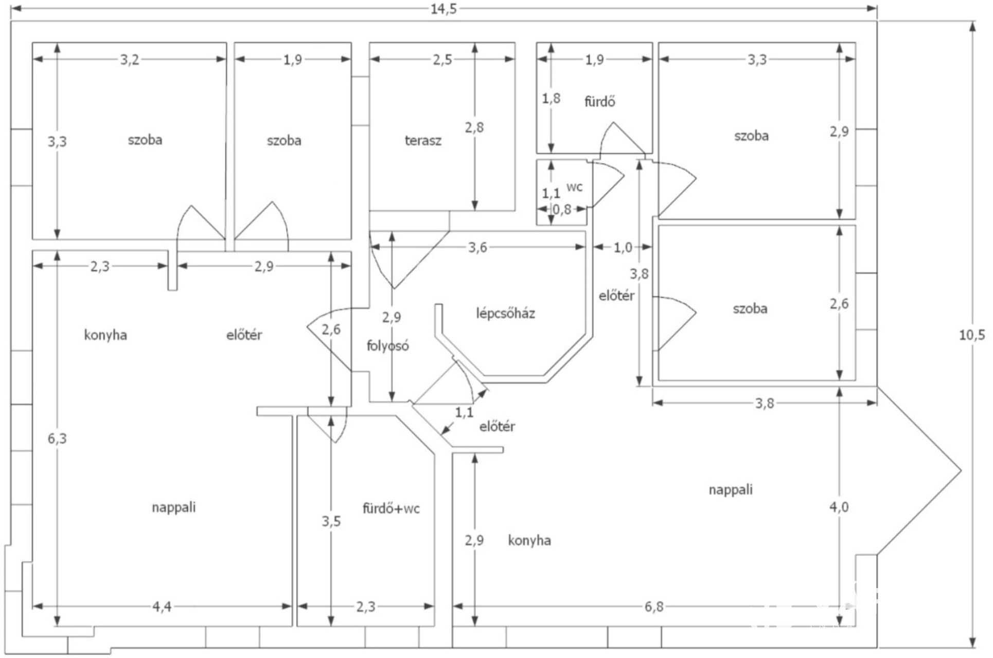 1.lakás bruttó 55m2: két szoba ( 10+8,6m2), nyugati tájolású, világos nappali-étkező-konyha, fürdőszoba, külön toalett, közlekedő, előtér.