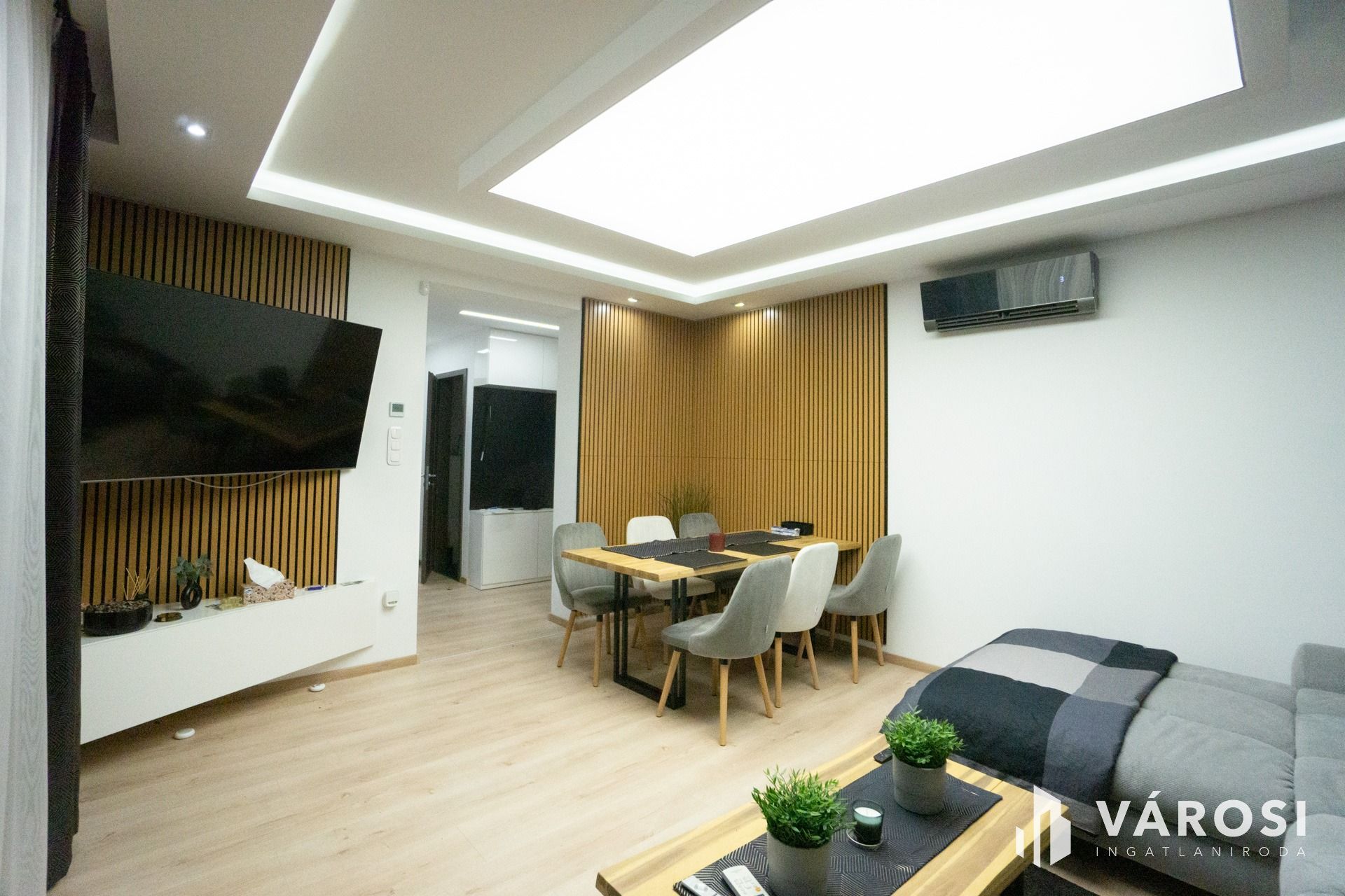 A lakásban felszerelésre került egy hűtő-fűtő klíma, ami biztosítja a mindig kellemes hőmérsékletet.