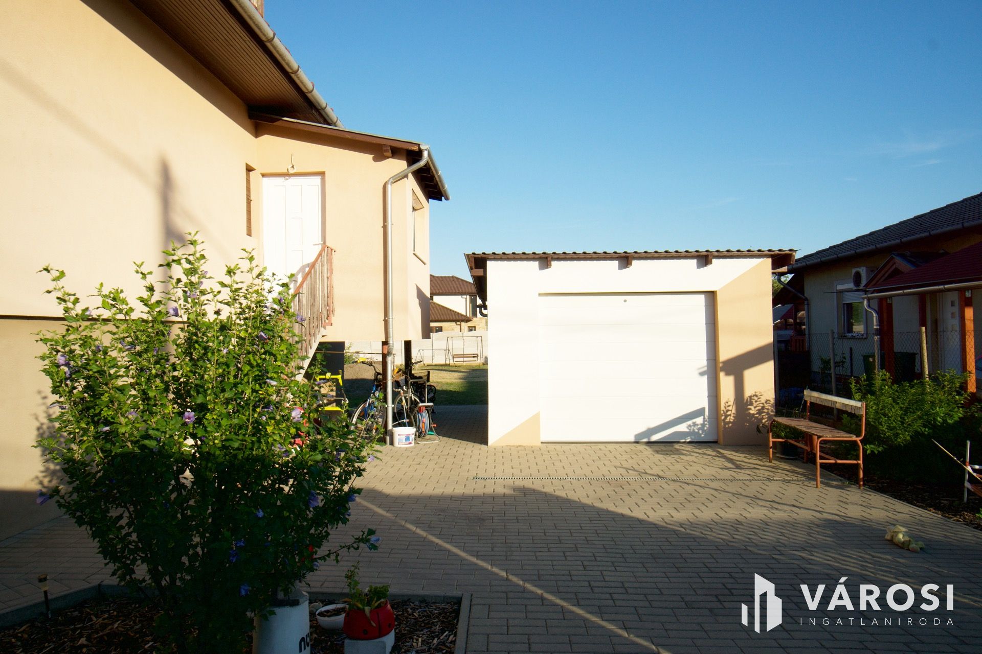 A csendes, családi házas utcában fekvő ingatlan nyugodt, zöld környezetet biztosít, ahol a pihenés és a természet közelsége a mindennapok része lehet. A tágas udvar gyermekeknek, kertészkedéshez vagy akár kisállatoknak is ideális.