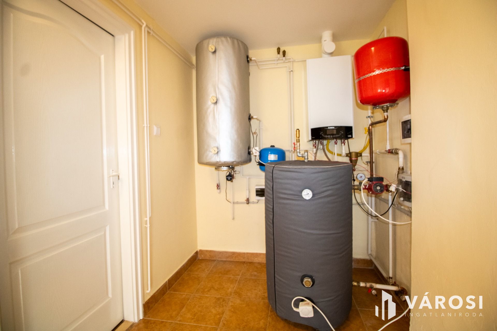 A fűtésről egy Ariston kondenzációs kazán gondoskodik 140 literes puffertartállyal, amely padlófűtésen és radiátoros rendszeren keresztül üzemel.