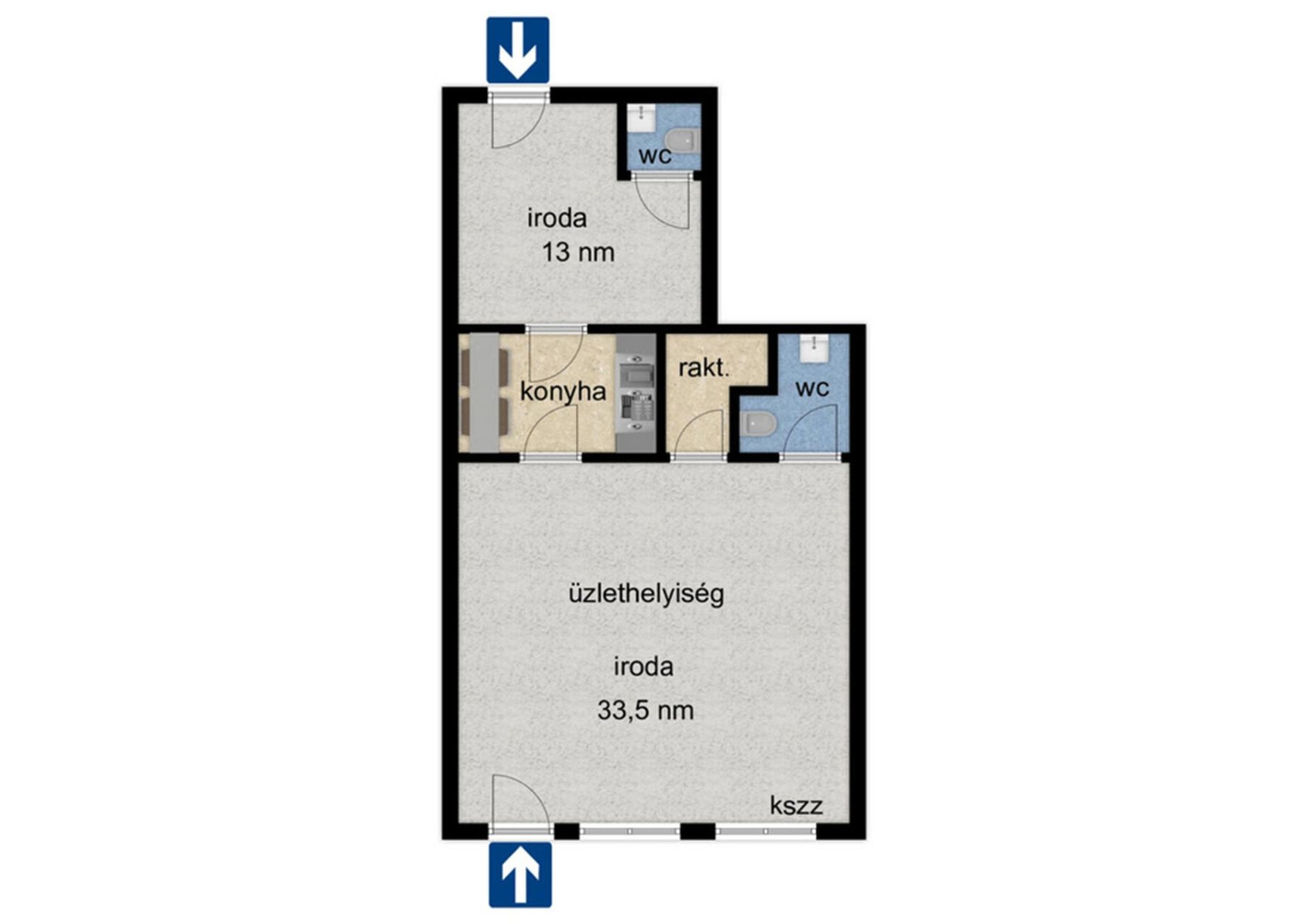- Üzlethelyiség, iroda helyiség, raktár,2 szeparált WC.